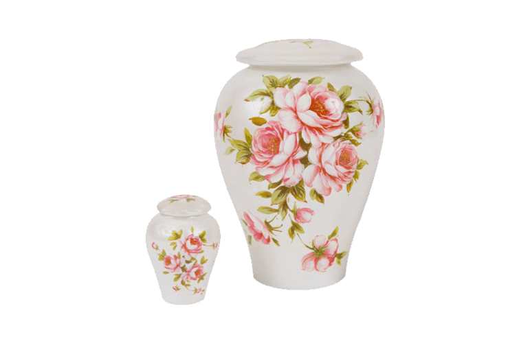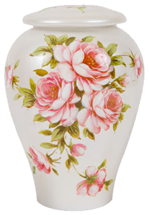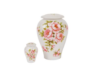 The Floral Urn series is made of ceramic and features a beautiful style with a choice of two colors. These urns open from the top and have a matching lid that can be sealed when ready. With both designs, a matching keepsake urn is available.