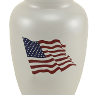 The perfect way to show respect for an American patriot, this stainless-steel cremation urn in a full-size classic shape showcases the simple elegance of the red, white, and blue flying freely on a white or slate background.