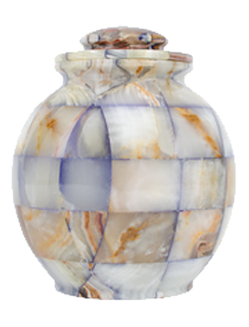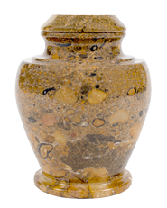 Developed to stand out among all others, the Stone Urn Series features a variety of different stones, pebbles and color to give the urns a "one of a kind" appearance. The urns opens from the top and has a matching lid which can be sealed when ready.